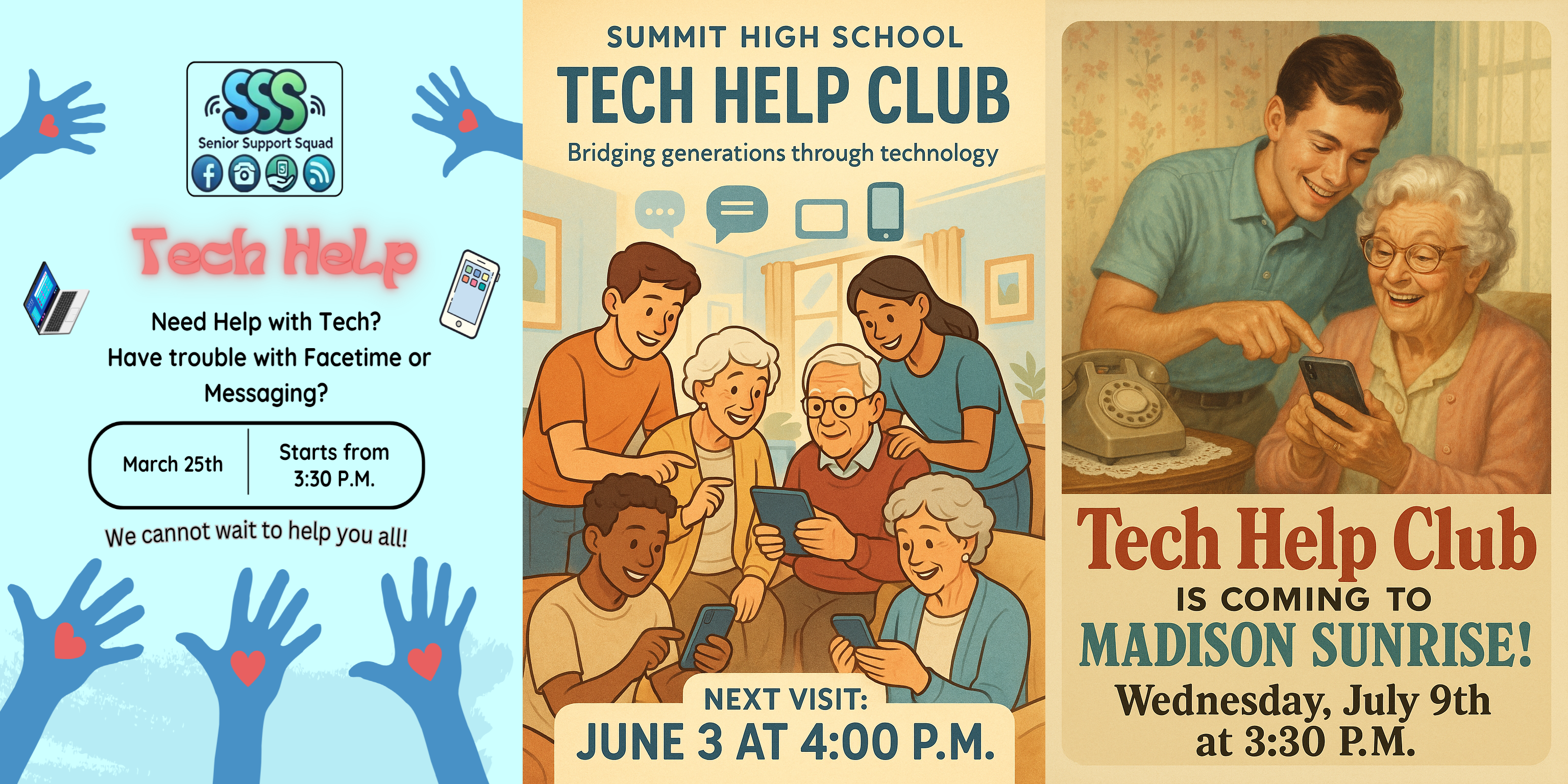 Hey there! We're the Tech Help Club from Summit High School, and we love helping seniors get comfortable with their tech. Whether it's figuring out how to FaceTime with grandkids or just getting emails to work, we're here to help with a smile.